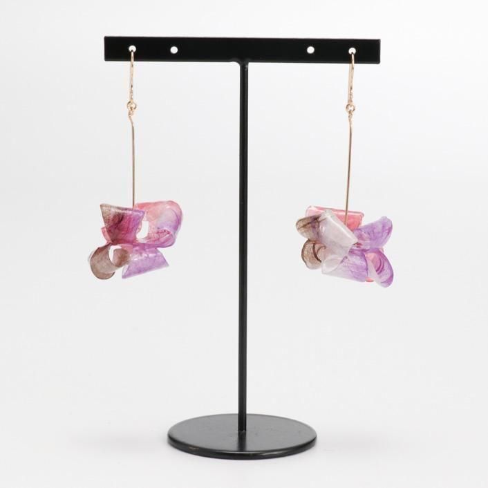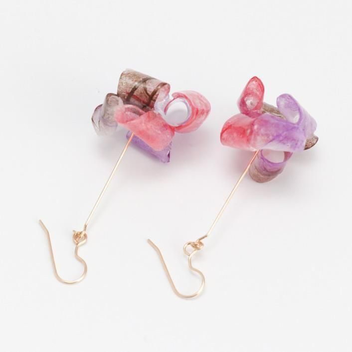 花びらのように広がる柔らかなフォルムと、カラフルなグラデーションのモチーフが揺れる、和紙のアクセサリーです。