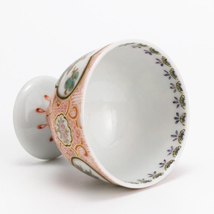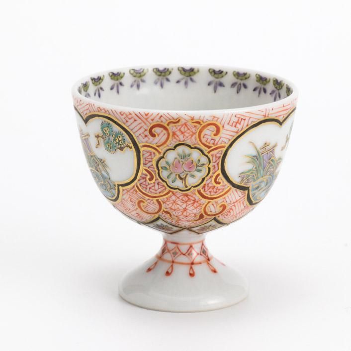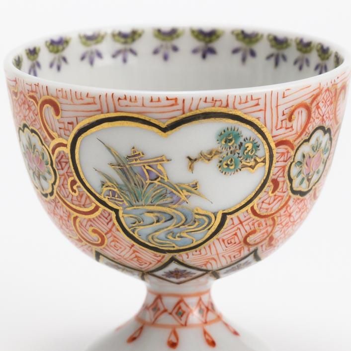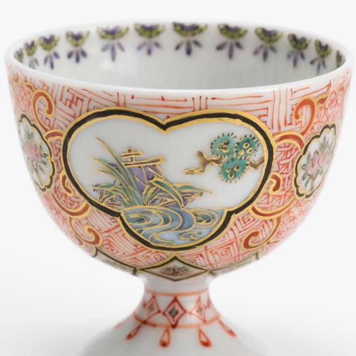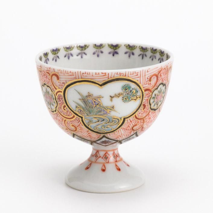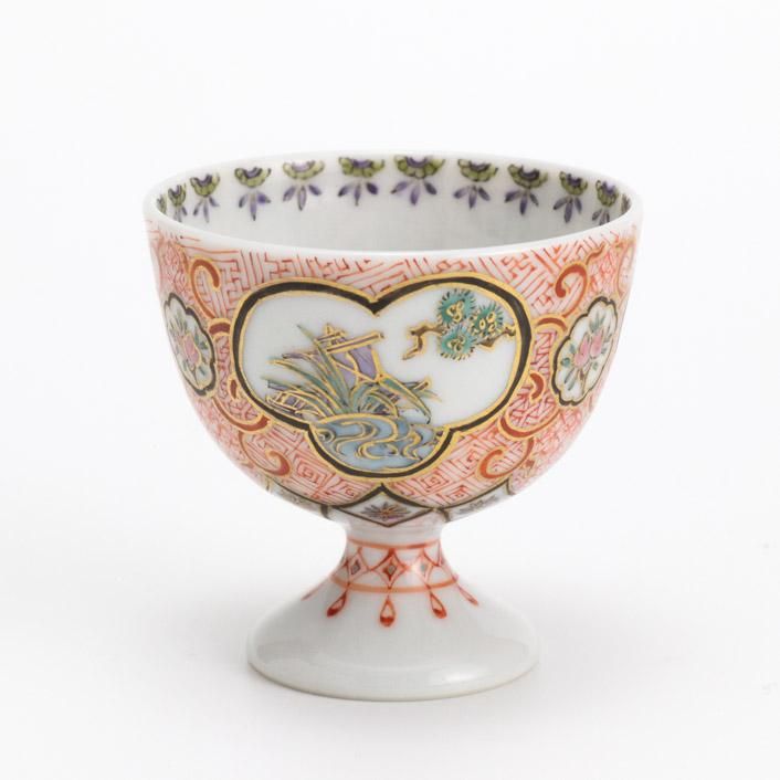 淡い色調で美しい葦舟と景色を描いた九谷焼の盃です。