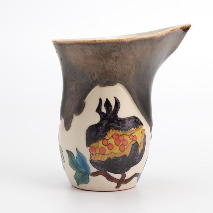 九谷の和絵具による艶やかな色絵で柘榴(ざくろ)が描かれています。