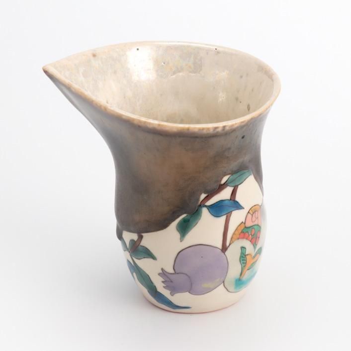 独特のフォルムが個性的などこかエキゾチックな片口は、工藤さんが独自に配合したオリジナルの絵具を使って彩色しています。