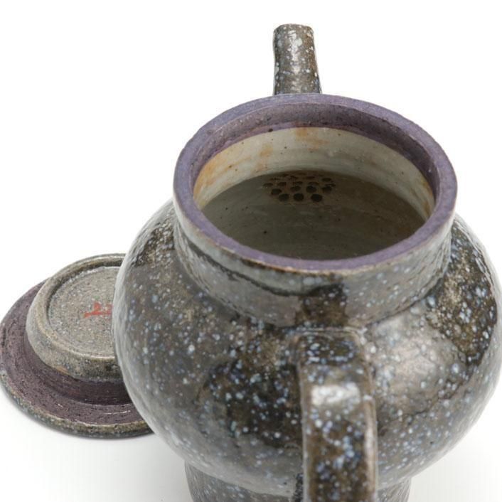 全体覆う独特の釉薬の味わいが美しく、蓋には銀彩が施され、様々な陶芸の技術や技法を熟知した作家による遊び心満点の作品です。