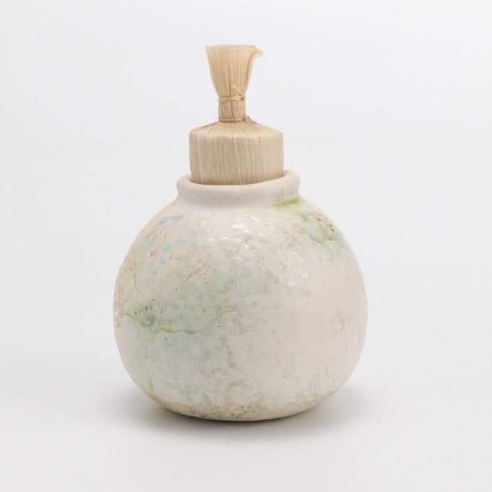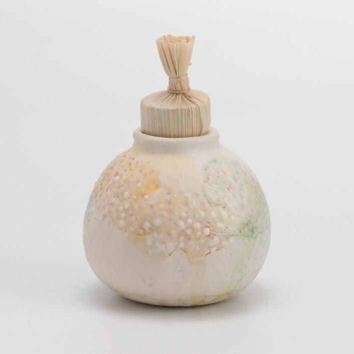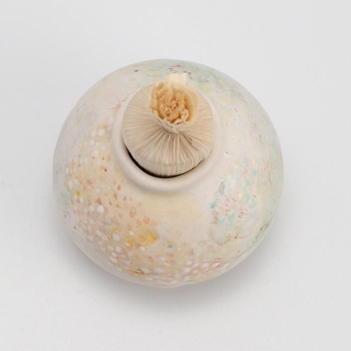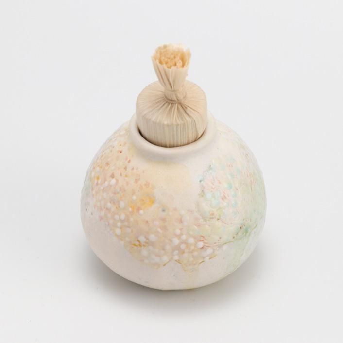 土の温もりを感じる素地と、色絵具や様々な釉薬が見せる複雑な表情が魅力的で、金平糖や干菓子などの小粒の菓子を入れてお楽しみいただけます。