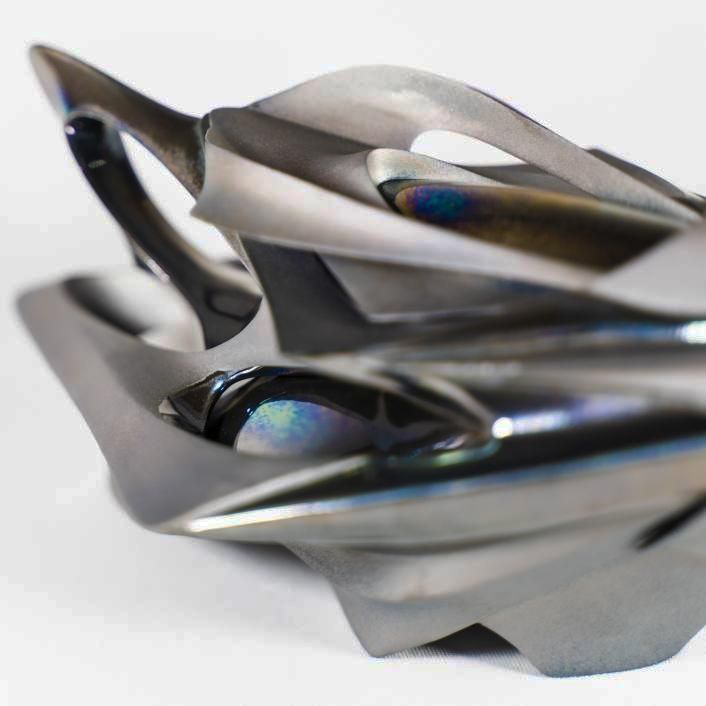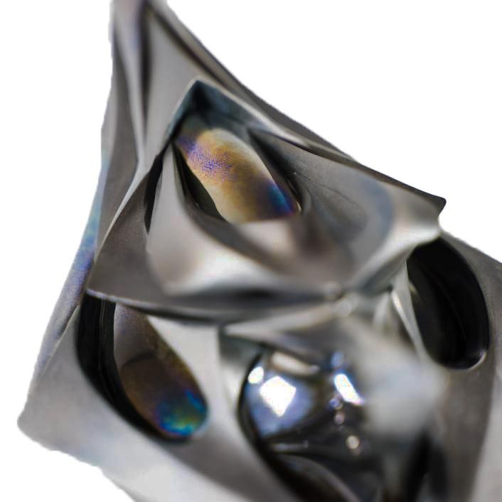 黒い器を完成させた後に、全体にパールラスターを施して仕上げています。釉薬がある部分は、メタリックな光沢を、無釉部分にはシルバー色のようなマットな色味をお楽しみいただけます。